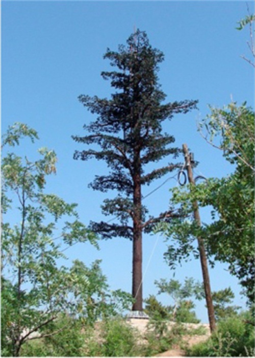 通訊鐵塔仿生樹是通信行業用於偽裝天線最常用樹型之一,高10米~35米。樹冠整體造型成寶塔狀。 通訊鐵塔仿生樹采用高強度的鍍鋅管塔為主杆,外敷高分子仿真樹皮,透波性率強,阻燃性好,達到I級阻燃指標,保證20年不老化。樹葉采用抗紫外線PU高性能防阻燃環保材料。耐腐蝕性能好,耐老化耐高溫防阻燃,更加環保,防紫外線強。整體外形不僅美觀,仿真度高、經久耐用,而且與周邊環境特別協調,非常適用於對環境美化要求較高的基站如:高級住宅區、主題公園、風景名勝旅遊區、動植物保護區及遊樂場所。